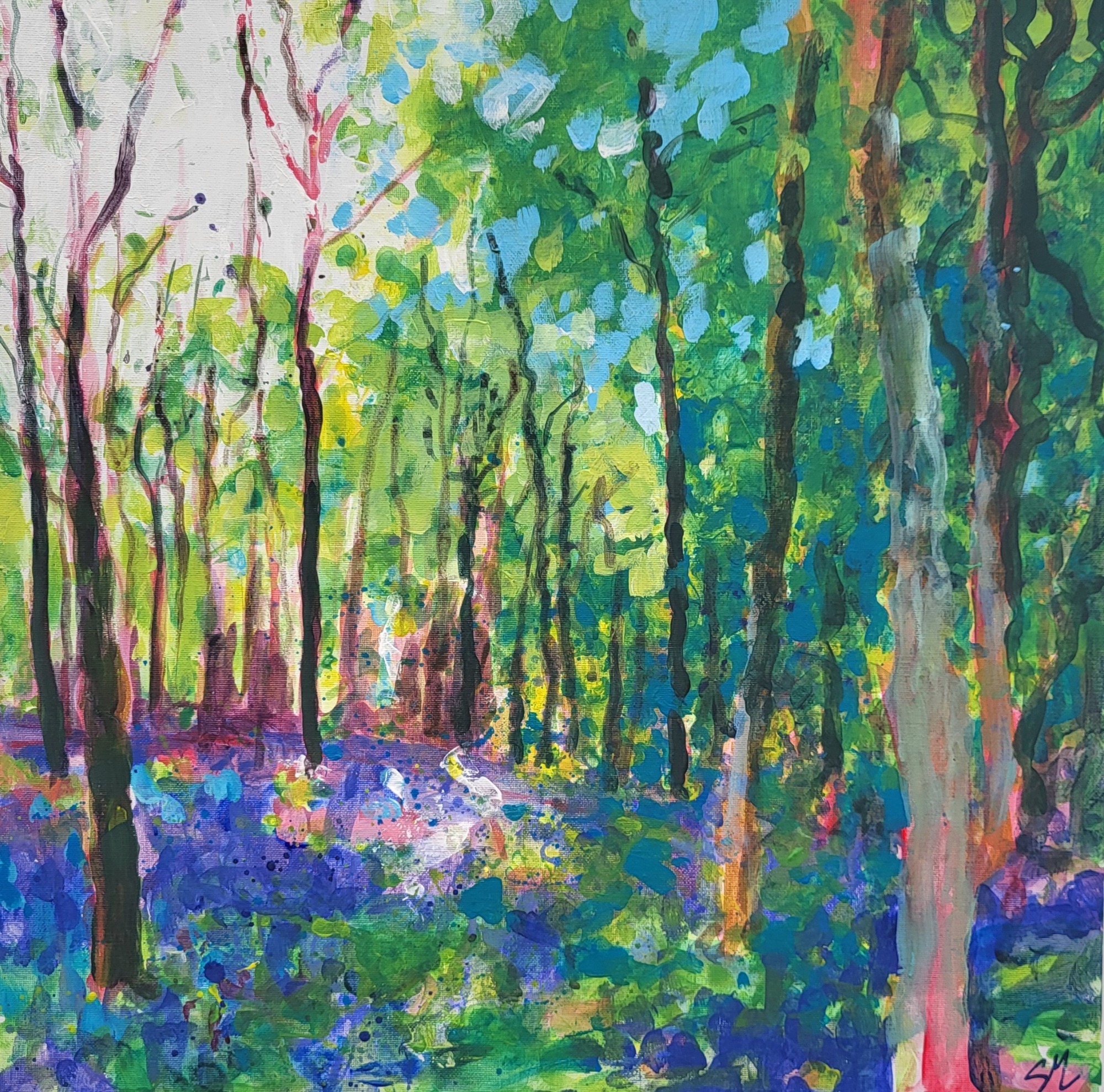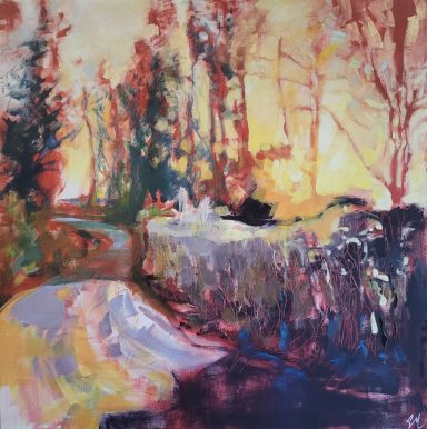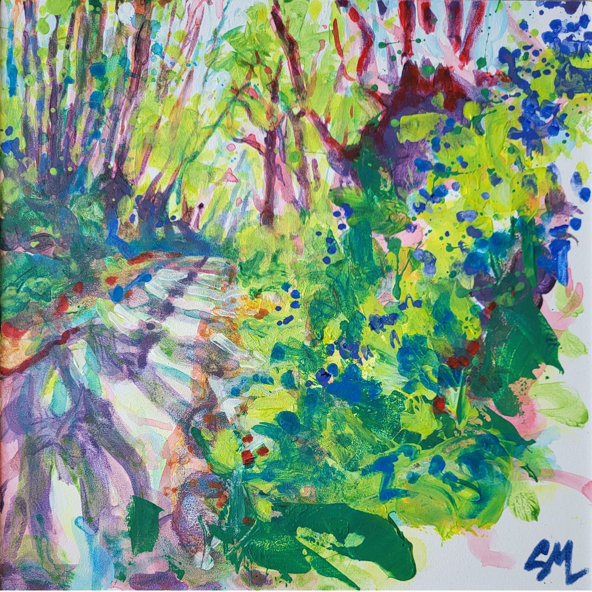 Thank you to contributors on Instagram who helped me find the right name for this series!! This series includes a number of studies and paintings inspired by rivers, streams and brooks, especially the River Darent in Kent. It captures the light, reflections and different atmosphere along its course. Deep purples and blues set against vibrant splashes of colour are the palette for these riverside paintings.